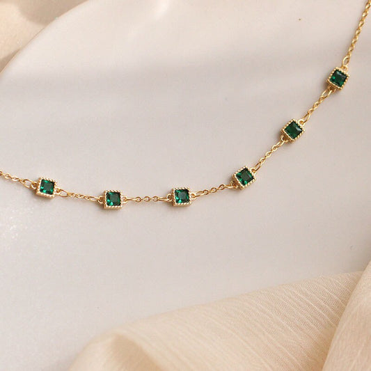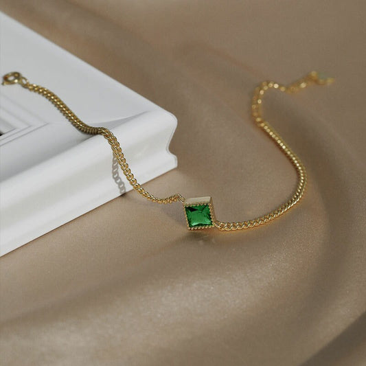 Dainty Square Emerald CZ Bracelet, 14k Gold Vermeil Emerald Charm Bracelets, Minimalist Emerald Bracelet, Gift for her, GB01