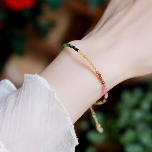 Tiny Tourmaline Bracelet, Gold Natural Tourmaline Bracelet, 2mm Tourmaline Bracelets, Tiny Gemstone Bracelet, Perfect Gift for Her, GB10
