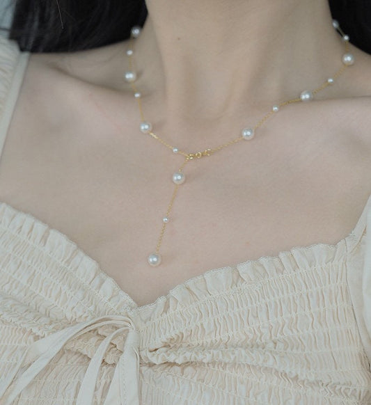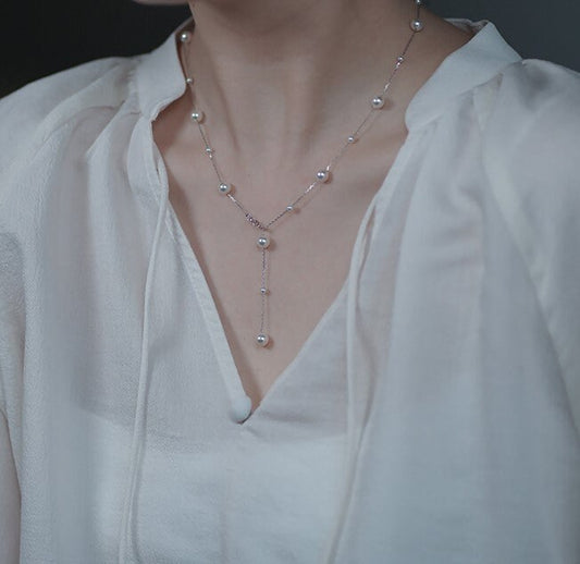 Y-shape Pearl Silver Choker Necklace